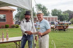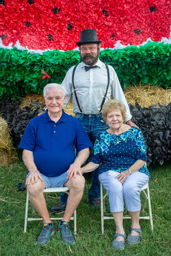 In 1913, one hundred fourteen carloads of melons were shipped from this small town in Southeast Missouri in one day (1300 melons per carload). This product alone made the economy for Blodgett one of the strongest in Scott County at the time. Present Mayor David Russell has pushed for many years to make the melon industry the focal point of Blodgett. Mayor Russell designed the City Signs, the City Flag and last but not least his design of the largest manmade watermelon float pulled by a steam locomotive. In light of this, Mayor Russell, City Council and Citizens proclaimed this the theme of Blodgett’s Sesquicentennial. The full history of Blodgett is documented and will be shared in the Blodgett portion of the 2021 Scott County Missouri Bicentennial book. A special thanks goes out to Blake Wade Melon Company for supply of event watermelons and the citizens who volunteered to assist in the event, inserting over 100,000 tissue paper into the wired mesh attached over the watermelon structure. I also would like to thank Representative Holly Rehder, Mike Marshall and the Jack Marshall family for joining in the festivities. The below depicts the highlights of the Sesquicentennial.